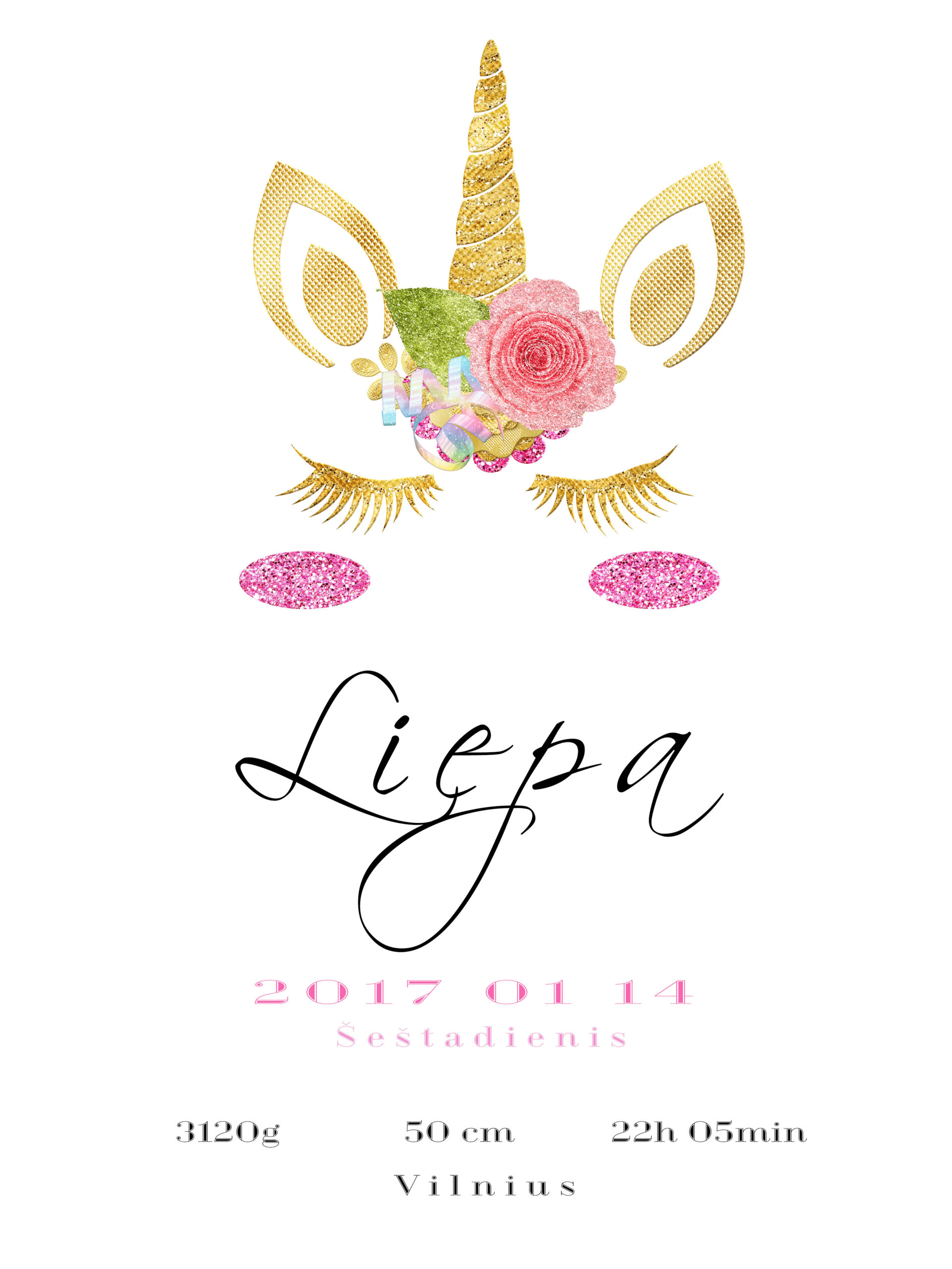 Ši vienaragio metrika gali būti nuostabi dovana gimus mergaitei ar mergaitės gimtadienio proga. Mažylei, kuri ryškiai šviečia ir drąsiai svajoja. Lai vienaragis saugo jos viltis ir svajones.